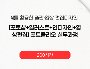 기초부터 AI를 활용한 출판·영상 편집디자인[포토샵·일러스트·인디자인·영상편집]포트폴리오 실무과정 260시간(1회차) [진행중] |