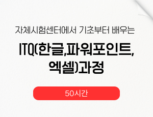 (재) 자체시험센터에서 기초부터 배우는 ITQ(한글,파워포인트,엑셀)자격증과정 50시간(46차) [진행중] |