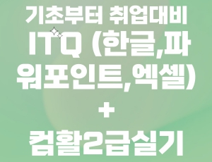 | 과정명 | (구)기초부터 취업대비 ITQ(한글,파워포인트,엑셀)+ 컴퓨터활용능력2급실기 140시간(2차)-4.4(10) [종료] |